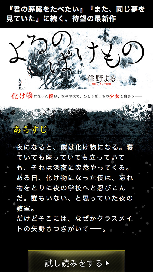 よるのばけもの 公式アカウント 住野よるデビュー作 75万部突破のベストセラー小説 君の膵臓をたべたい のコミック版が2月10日発売となりました 二作目 また 同じ夢を見ていた 最新作 よるの