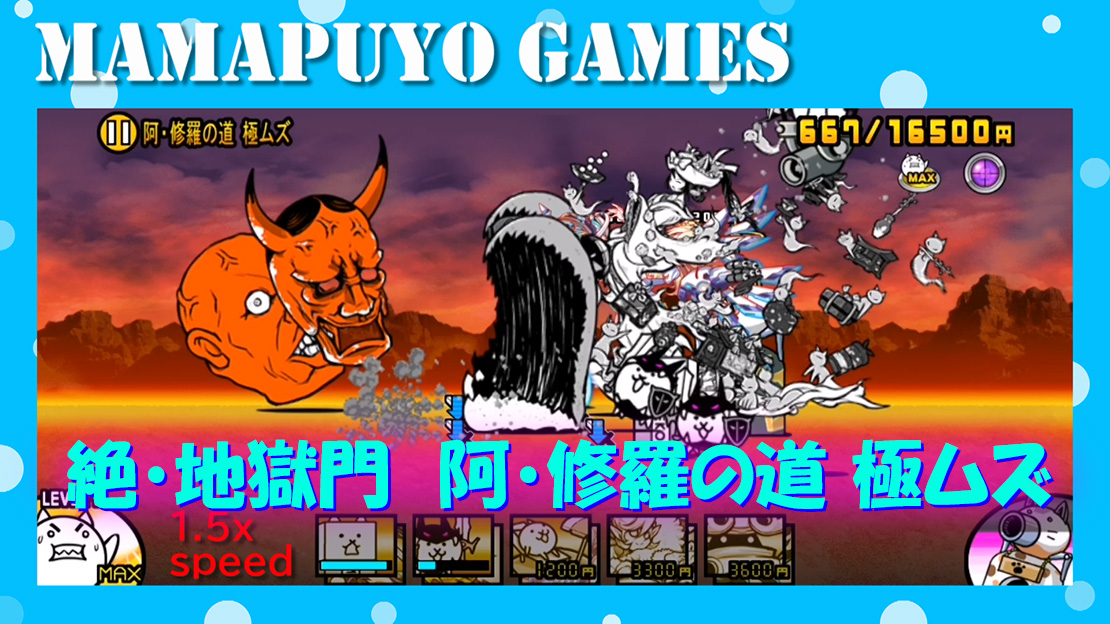 May 26, 19 · にゃんこ大戦争の日々 (Day of Battle cats) 小学校6年生の孫に教えてもらってにゃんこ大戦争をやっているおじいちゃんのブログです。 絶・地獄門 阿・修羅の道 極ムズ 挑戦してみた. Apr 25, 19 · 絶・地獄門極ムズ2ステージクリアすると、ネコ新幹線が進化します阿・修羅の道極ムズ出撃制限あり般若の赤羅我王、ダチョウクラブ、イノシャシニャームスレベル30チビキンドラ5038基本キャラ80桃太郎とトロピカルカリファレベル50ネコボン般若の赤羅我王と、イノ. Jul 11, 19 · にゃっにゃ〜! ひでにゃんだにゃ!( `・∀・´)ノヨロシク 前々からやろうと思って放置してた、エクスプレスゲットしに行くにゃ〜!と、言う訳で、絶・地獄門の「羅刹街道 超極ムズ」をやるにゃ!(ΦωΦ)ニャ (「阿・修羅の道 極ムズ」は既にクリア済みだにゃ!) (阿・修羅の道 極ム.